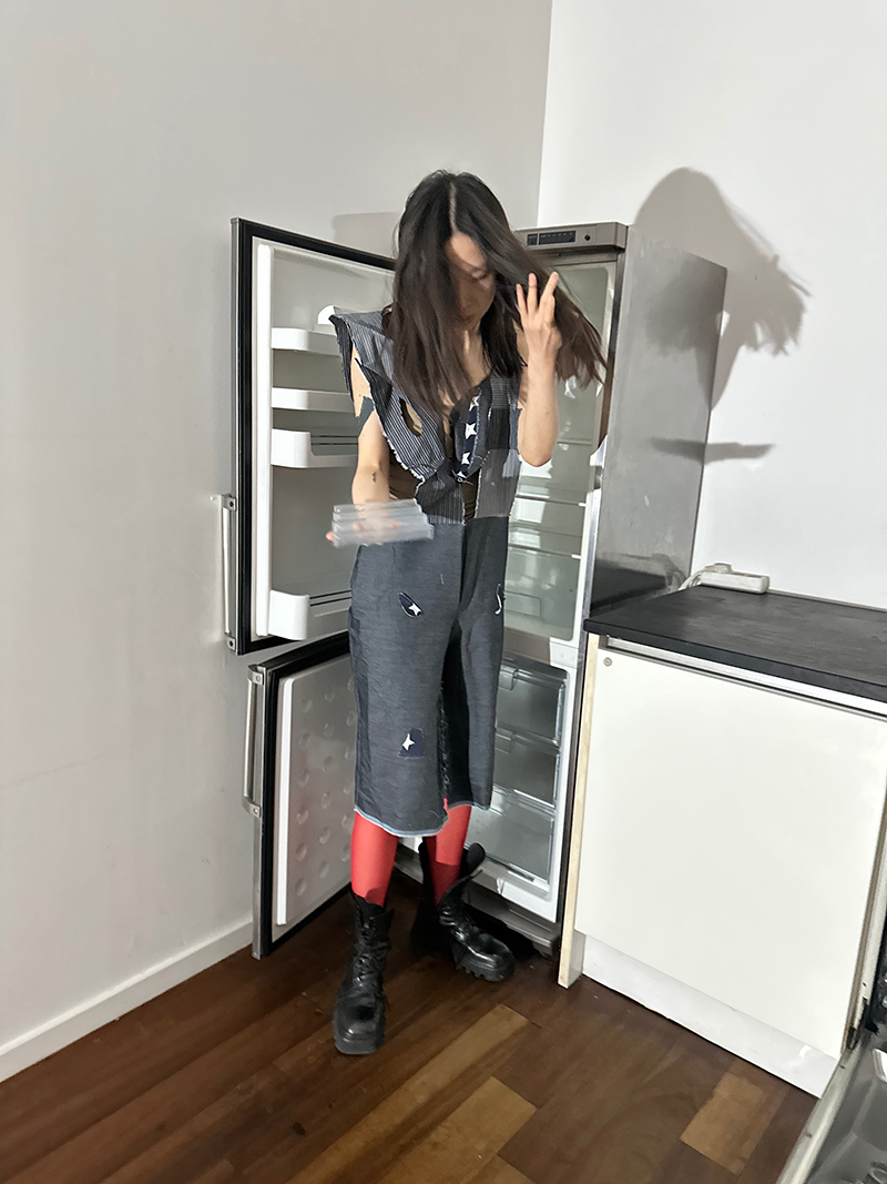 the essence of COMMEDESMARXISTS --- can be esaily detected in this images and yet I am living so under duress that i cannot say what really goes on in this picture and the context of its making. My partner here, Peng is my only hope in life and hence.... a person who dissiminates hope in a voluptious way and with the means of nothing.... commedesmarxists is not financed by capital as such... but rather by a mode of exchange that is philosophical in nature and triumphant over prejudices that I can only utter in relationship to the near by STALIN ALLE turned KARL MARX ALLEE .... BERLIN and the subway stop was demolished by bombs.. but yes.. this was former DDR, Soviet Zone and the WAR AND ITS HISTORY IS VIVANT .. HENCE Hollbach is a point to reflect not only the history of this very place, the origin of this "brand" and the personal misfortune I am in but also the friendships that have endured this place .... yet.... it was strange.... from the beginning .... a philosophical questioning and astonishing answers and endless answers .... in relationshipt to this place.... my life has dramatically changed and i might say.. now ... again to the winds of one of the coldest days in berin at the moment in december 2025 where the light changed and the year runs up to bark over the top.....